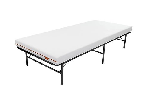 Black mattress platform in metal. Mattress can be put directly on top of platform for use.