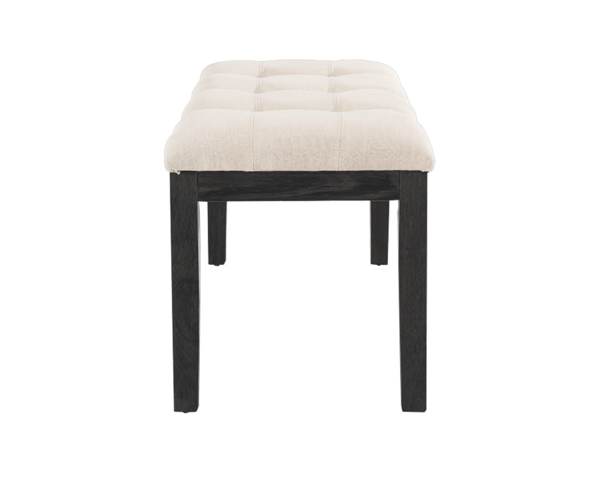Adorn your furniture with an elegant beige fabric upholstered benchKey Features:Thick fabric padded seating ensures comfort Breathable fabric for utmost comfortSturdy wooden legs give proper support to this masterpiece