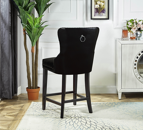 DimensionsBar Stool 21"L 24"W 43"H 27" Seat HeightMaterial & ColourBlack PU Plush Cushioned Barstool with Chrome Nailhead and Chrome Ring