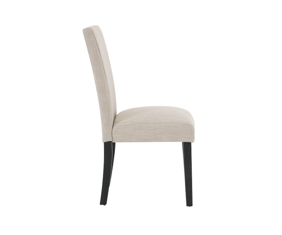 These fabric dining chairs are both classy and elegant, with their unadorned features; these chairs will only enhance the art and style that surround them.Key Features:Dining chair of durable fabric on wood frame Contemporary design with wooden frame and tufted upholstery in beige fabric; solid-wood legs with expresso finishFoam padding and elastic suspension system keep the back and seat firm and springy.