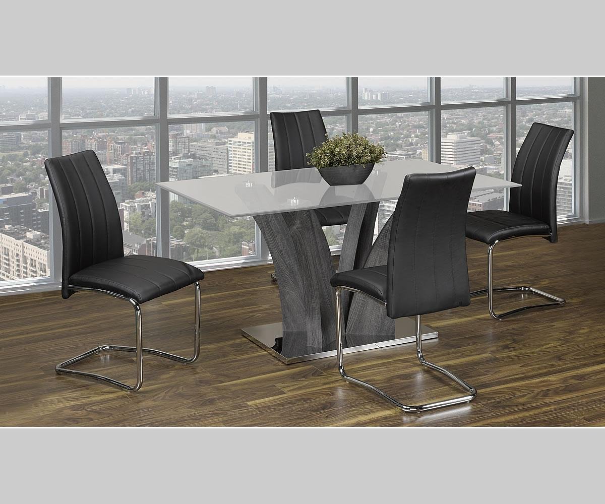 Featuring sharp edges, these dining chairs will look good with any dining table.Key Features:Thick and comfy seat cushion covered in black PU upholsterySturdy Steel legs with high chrome finish Comfy back support with padded construction.