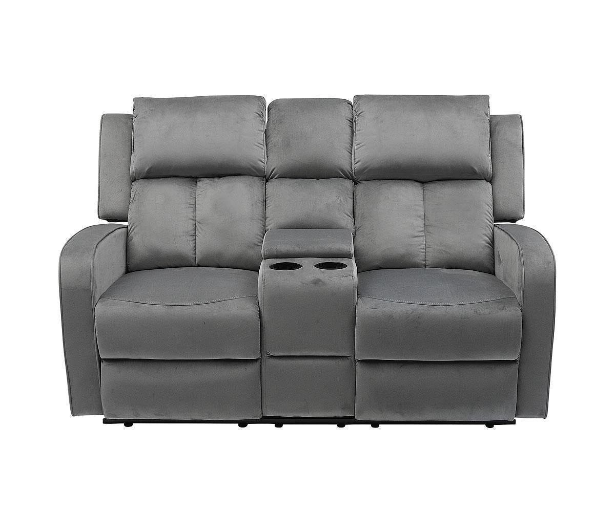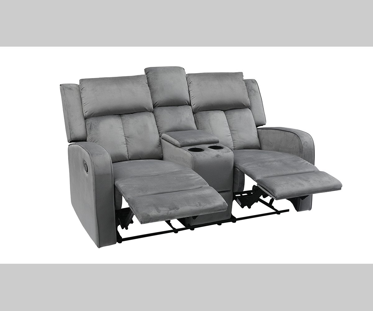 A loveseat worthy of its own audience.Key Features:Accented by suede upholstered Velvet FabricRecliner Loveseat with centre storage console